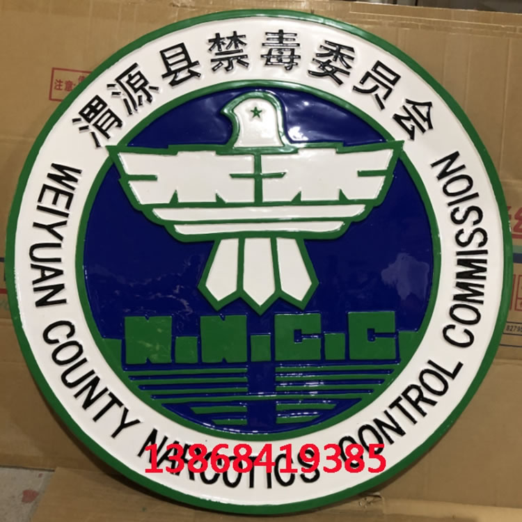 | 安裝方式 | 禁毒徽章-小徽章背面都配有穿掛耳孔,釘子釘在墻上,再用穿鐵絲鋼絲,適合安裝在辦公室/會議室會場等。大徽后面為膨脹螺絲孔,安裝需要定做鐵架,鐵架固定墻面上后,再將徽章固定在鐵架上。玻璃幕墻也是需要鐵架方式安裝。 |
