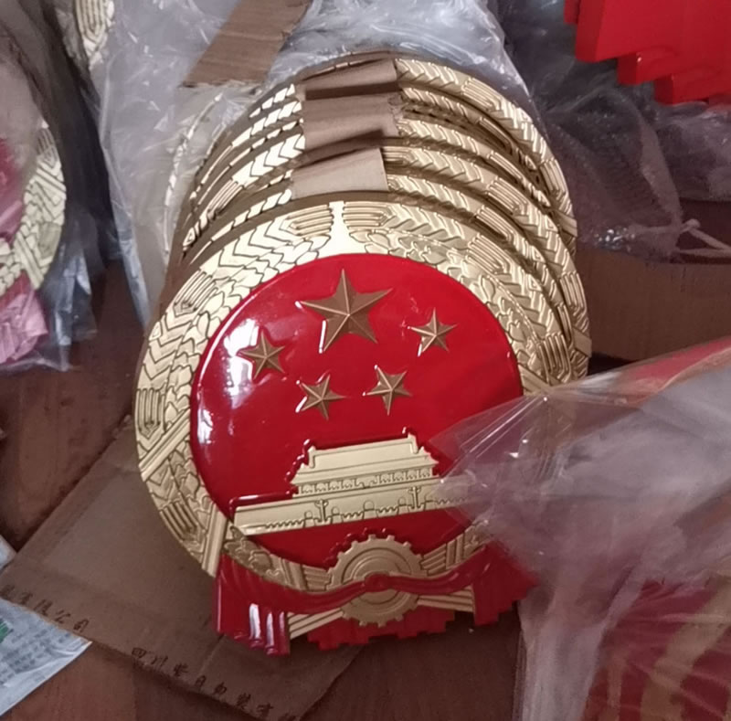 | 安裝方式 | 小國徽現貨-小徽章背面都配有穿掛耳孔,釘子釘在墻上,再用穿鐵絲鋼絲,適合安裝在辦公室/會議室會場等。大徽后面為膨脹螺絲孔,安裝需要定做鐵架,鐵架固定墻面上后,再將徽章固定在鐵架上。玻璃幕墻也是需要鐵架方式安裝。 |